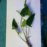 Anubias Hastifolia is a striking Anubias variety with distinct arrowhead-shaped leaves. It’s versatile for both aquariums and terrariums, where it can thrive submerged or emersed. This variant features slightly longer stems compared to smaller Anubias types, making it well-suited for the midground or background in aquascapes. Like other Anubias, it’s best grown by attaching its rhizome to hard surfaces such as wood or stones. This plant can benefit from regular fertilization, though CO2 is not essential.